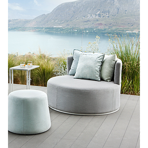 طقم كرسي استرخاء مع بوف وطاولة جانبية لوب - رمادي وازرق فاتح